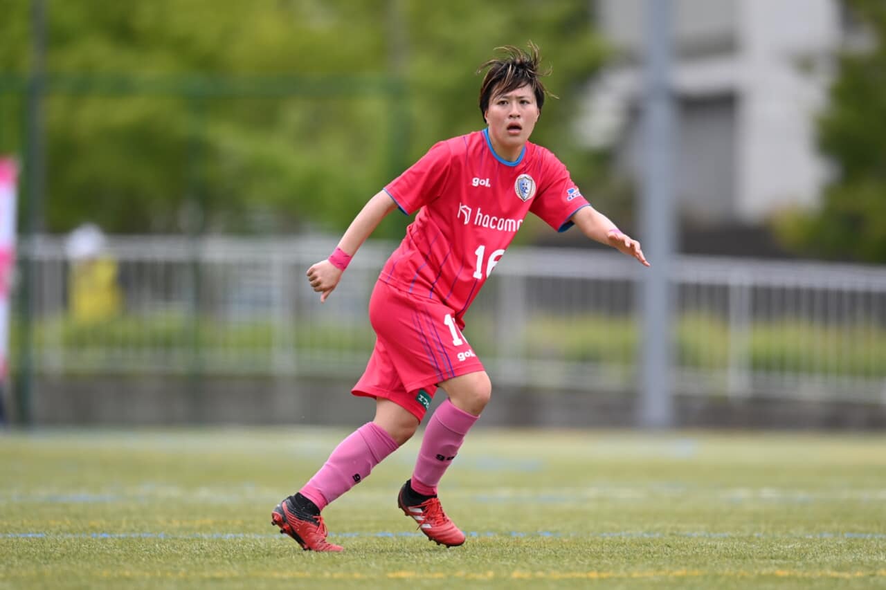 ボランチの2人がボールの動きに合わせて立ち位置を変えることにより、ピッチ中央には相手選手たちが捉え切れないエリアがところどころに生まれていった。そこを突いたのが高原麻実だ。狭いスペースでも後方からパスを引き出して前を向き、自身のドリブルに呼応する形で駆け上がっていく会沢日花里、佐藤幸恵、広瀬永里香を視界に入れた。後半開始と同時に投入された中谷汐音も、持ち前のパワフルで正確な左足のキックでゴールを狙う積極性を見せている。