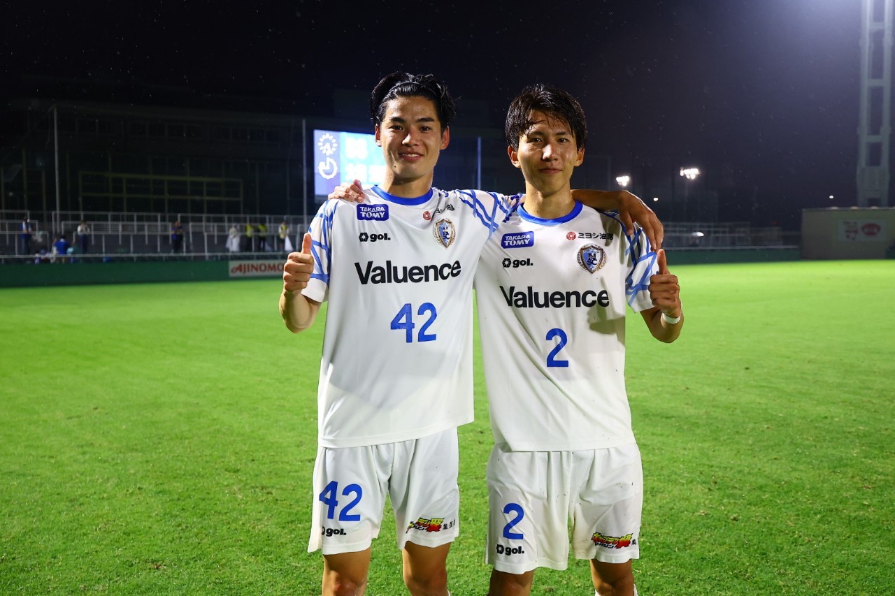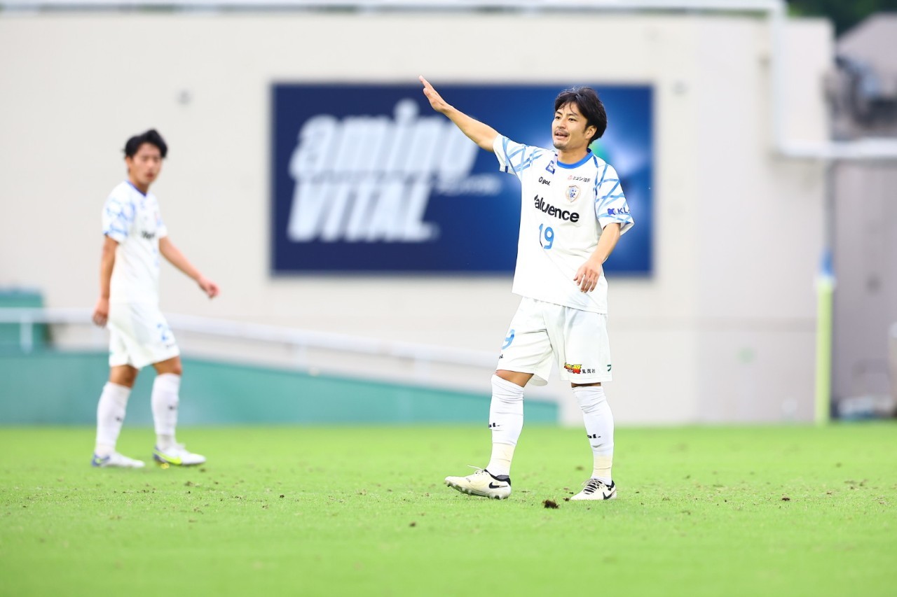 大前元紀が2ゴール、加藤政哉がリーグ戦初ゴールを挙げて3-1で勝利。この結果、勝ち点を17に伸ばした南葛SCは3位へと浮上した。今季初先発となった秋山大地は、今節の戦いぶりをこう回想する。「前半30分ぐらいまでは、自分たちがやりたいこと、練習でやってることがそのまま出せたと思っています。その後は、相手の“大きさ”や“距離”でプレーしてしまい、だんだん僕らのよさが薄れていってしまった。ただ、全体的に見れば、その前の2試合も含め、わりと自分たちの形が作れているし、自分たちの“距離”で戦えている。狭いエリアでも自信を持ってボールをつなぐことができていると思っています」