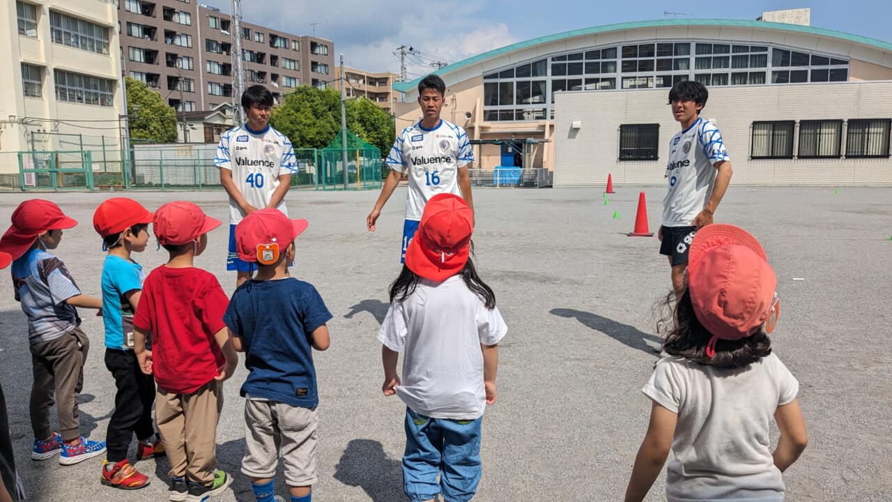 5月21日、南葛SCに所属する新井博人選手、武田幸樹選手、大郷海夢選手が、小菅保育園にて、サッカーを通じて「夢を持つこと」「仲間と協力すること」の大切さを教育現場と力を合わせて子ども心教育に貢献していくプロジェクト『翼DREAM』を行いました。