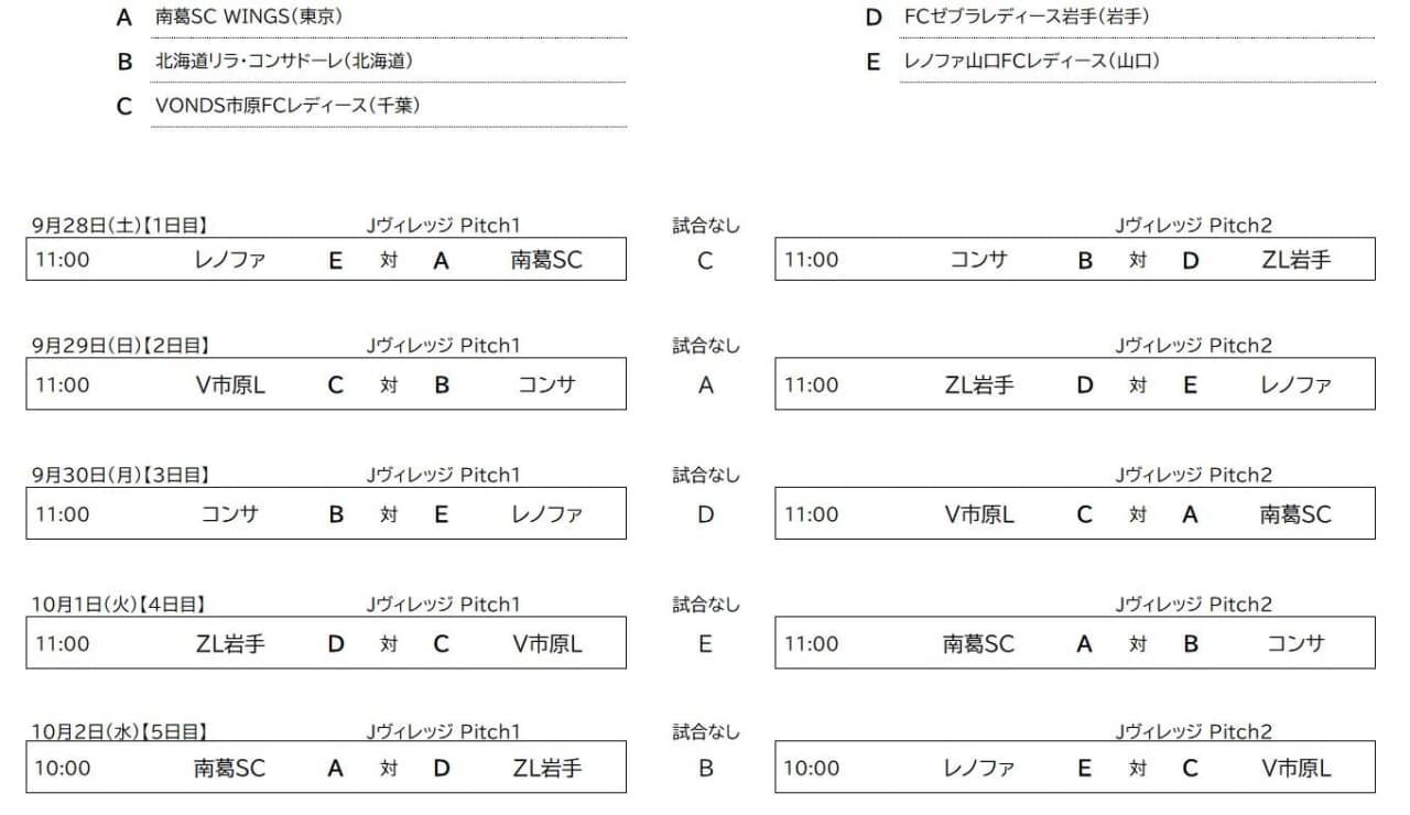 2024年9月28日(土)~10月2日(水)に福島県ナショナルトレーニングセンターJヴィレッジにて行われる、2024プレナスなでしこリーグ2部入替戦予選大会 組み合せが決定いたしましたのでお知らせします。