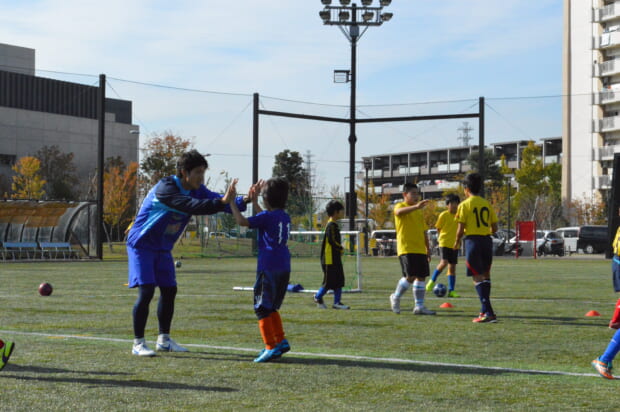 子供たちとプレーする疋田選手