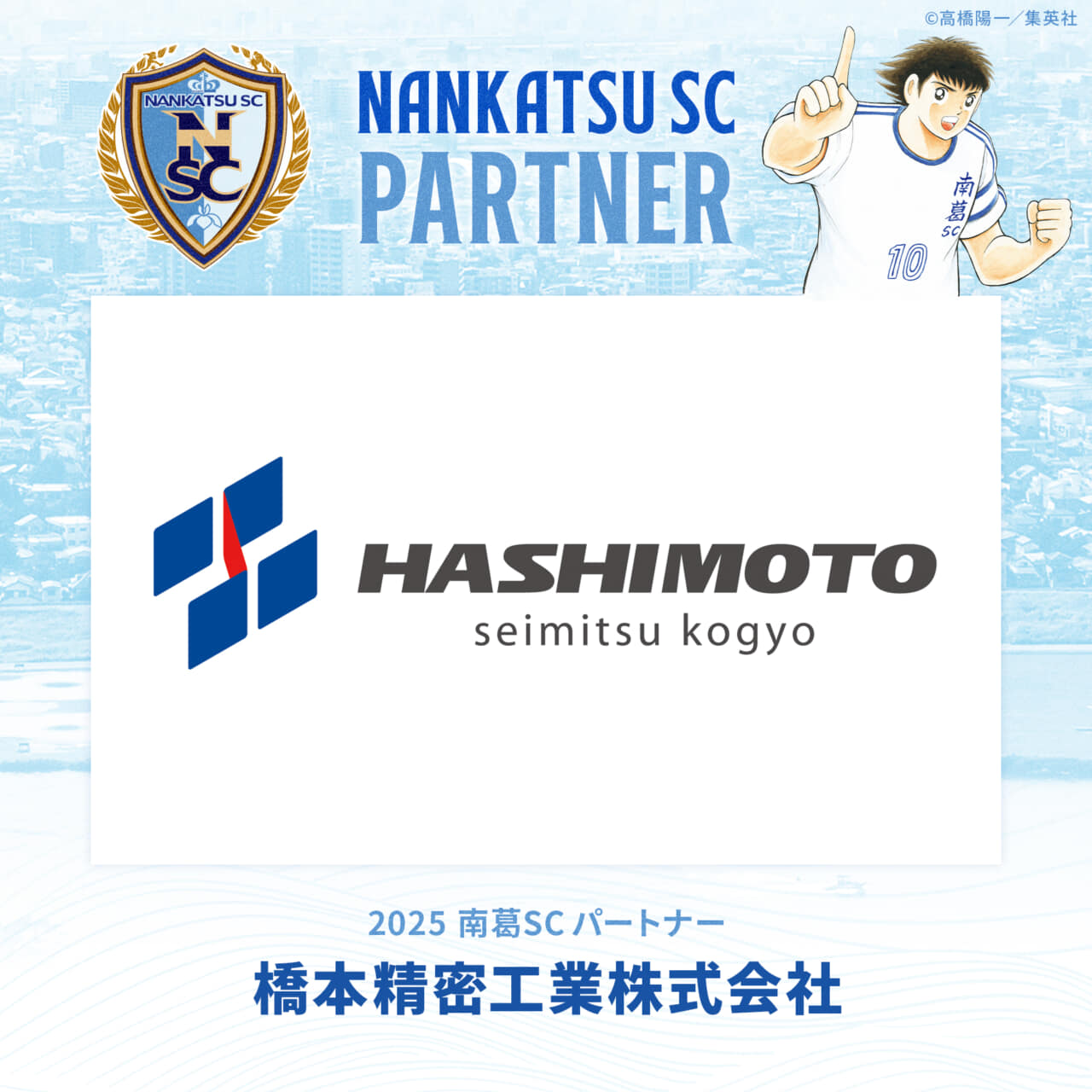 2024シーズンよりユニフォームパートナーとして、南葛SCをご支援いただいております『橋本精密工業株式会社様』様と、2025シーズンのパートナー契約を更新いたしましたのでお知らせします。