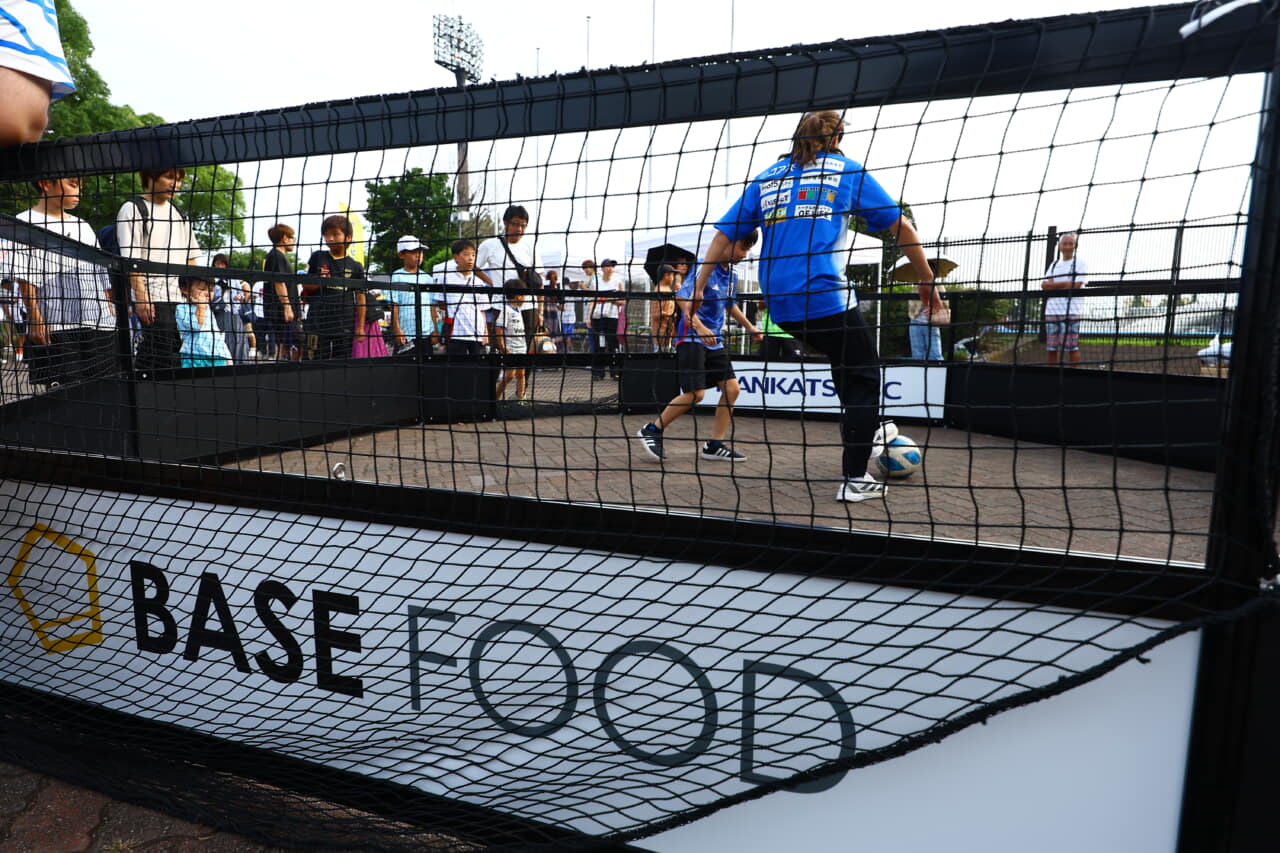 2024年、南葛SCはベースフード様とホームゲームにて、スペシャルマッチデーの開催、ベースフードのサンプリングなどの取り組みを行いました。