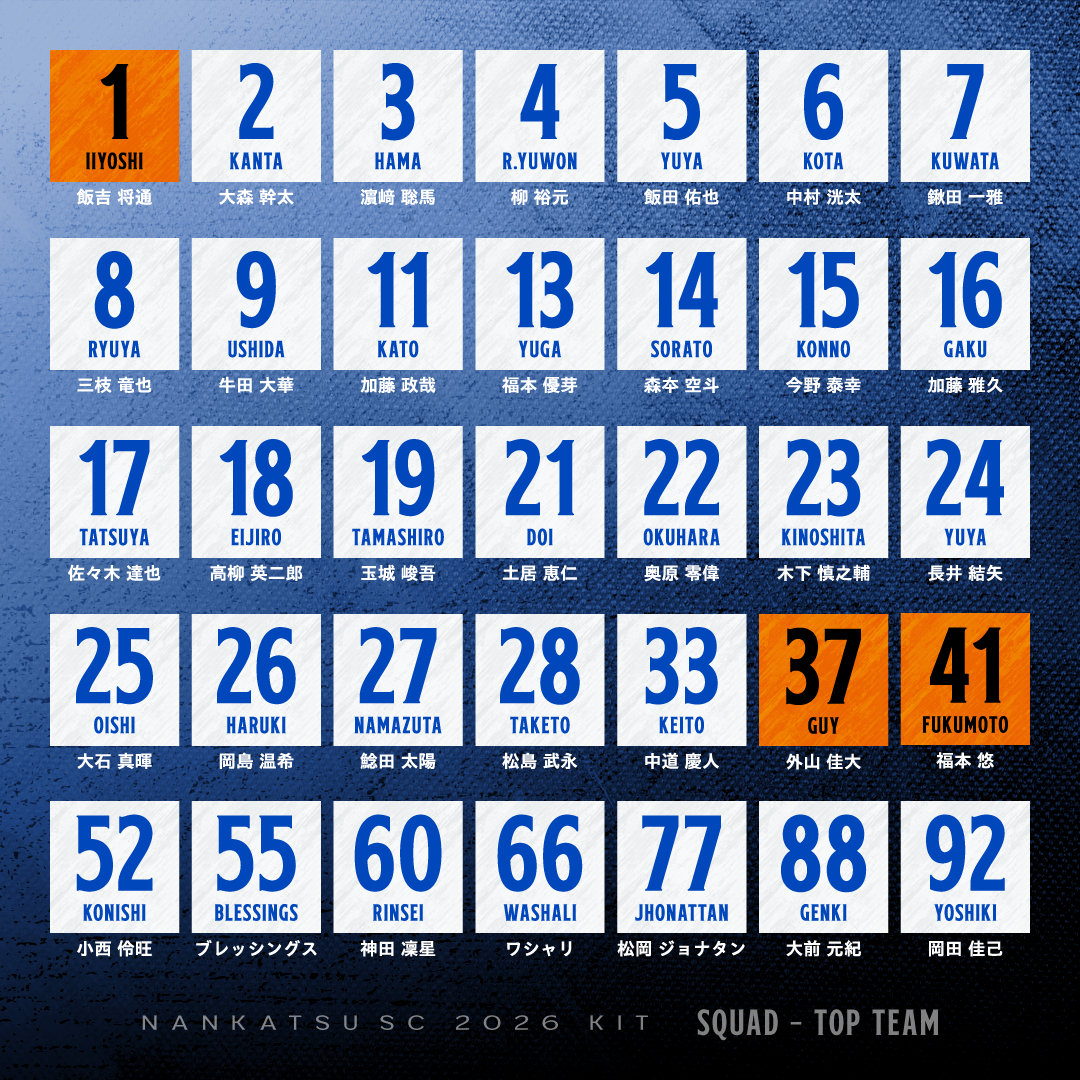 2026シーズンの背番号、およびユニフォーム表記が下記の通り決定いたしましたので、お知らせいたします。