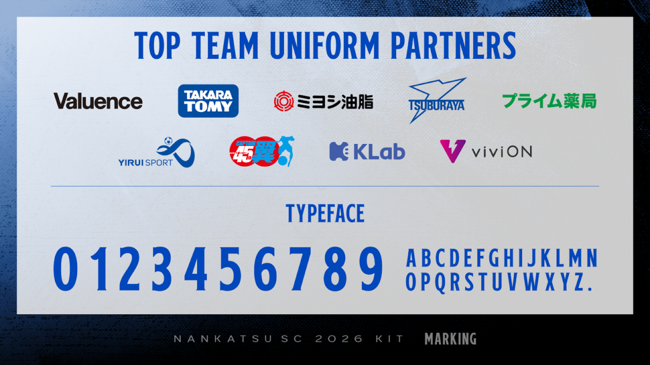 2025シーズンに引き続き、ネーム&ナンバーにはクラブ統一書体を採用。アイデンティティーを高める要素として、ユニフォーム以外の表現にも使用する。