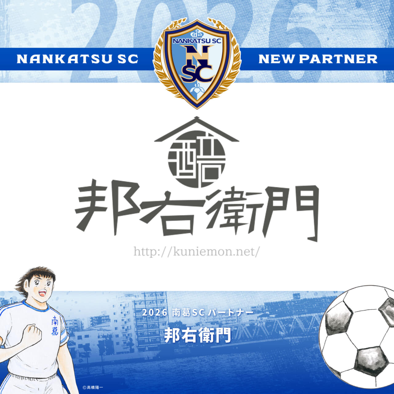 2025シーズンよりパートナーとして、南葛SCをご支援いただいております邦右衛門様と、2026シーズンのパートナー契約を更新いたしましたのでお知らせします。