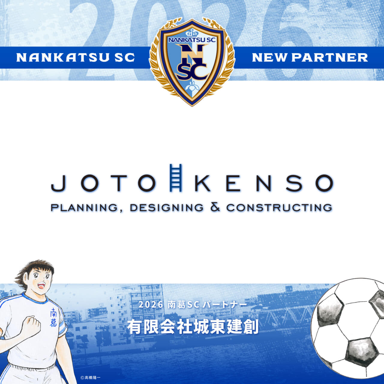 2025シーズンよりパートナーとして、南葛SCをご支援いただいております有限会社城東建創様と、2026シーズンのパートナー契約を更新いたしましたのでお知らせします。