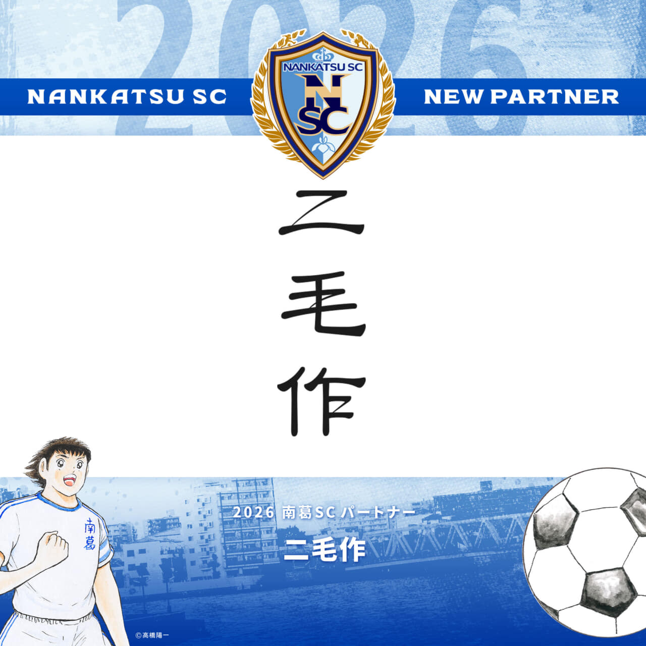 2024シーズンよりパートナーとして、南葛SCをご支援いただいております二毛作様と、2026シーズンのパートナー契約を更新いたしましたのでお知らせします。