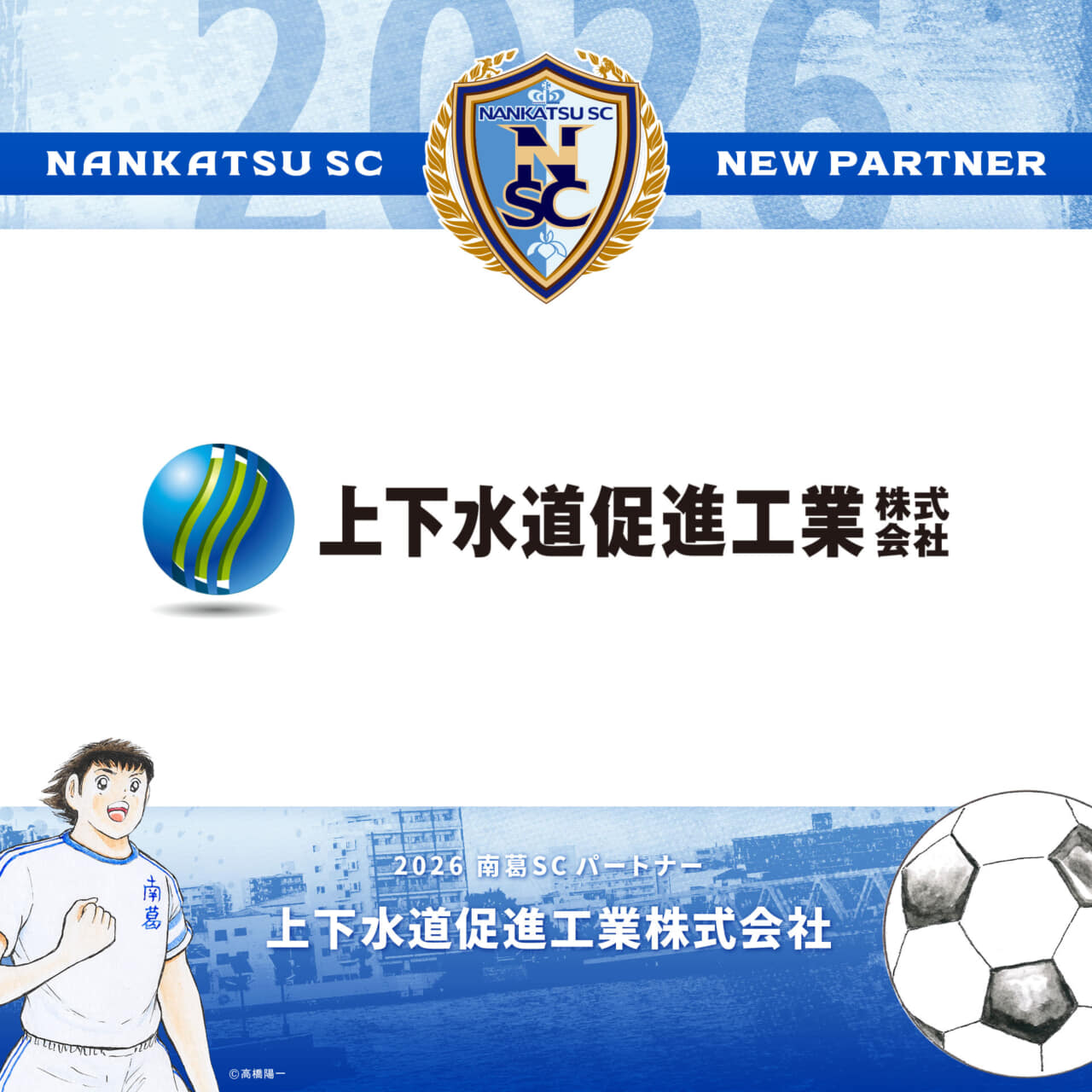 2021シーズンよりパートナーとして、南葛SCをご支援いただいております上下水道促進工業株式会社様と、2026シーズンのパートナー契約を更新いたしましたのでお知らせします。