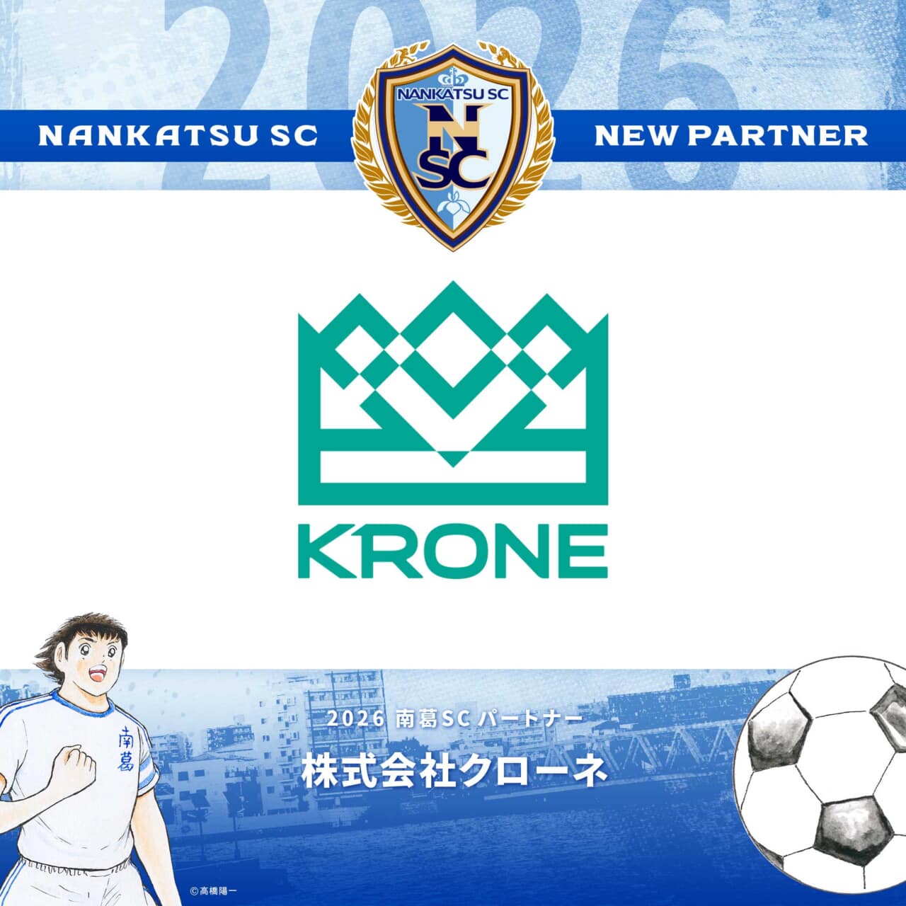 2024シーズンよりパートナーとして、南葛SCをご支援いただいております株式会社クローネ様と、2026シーズンのパートナー契約を更新いたしましたのでお知らせします。