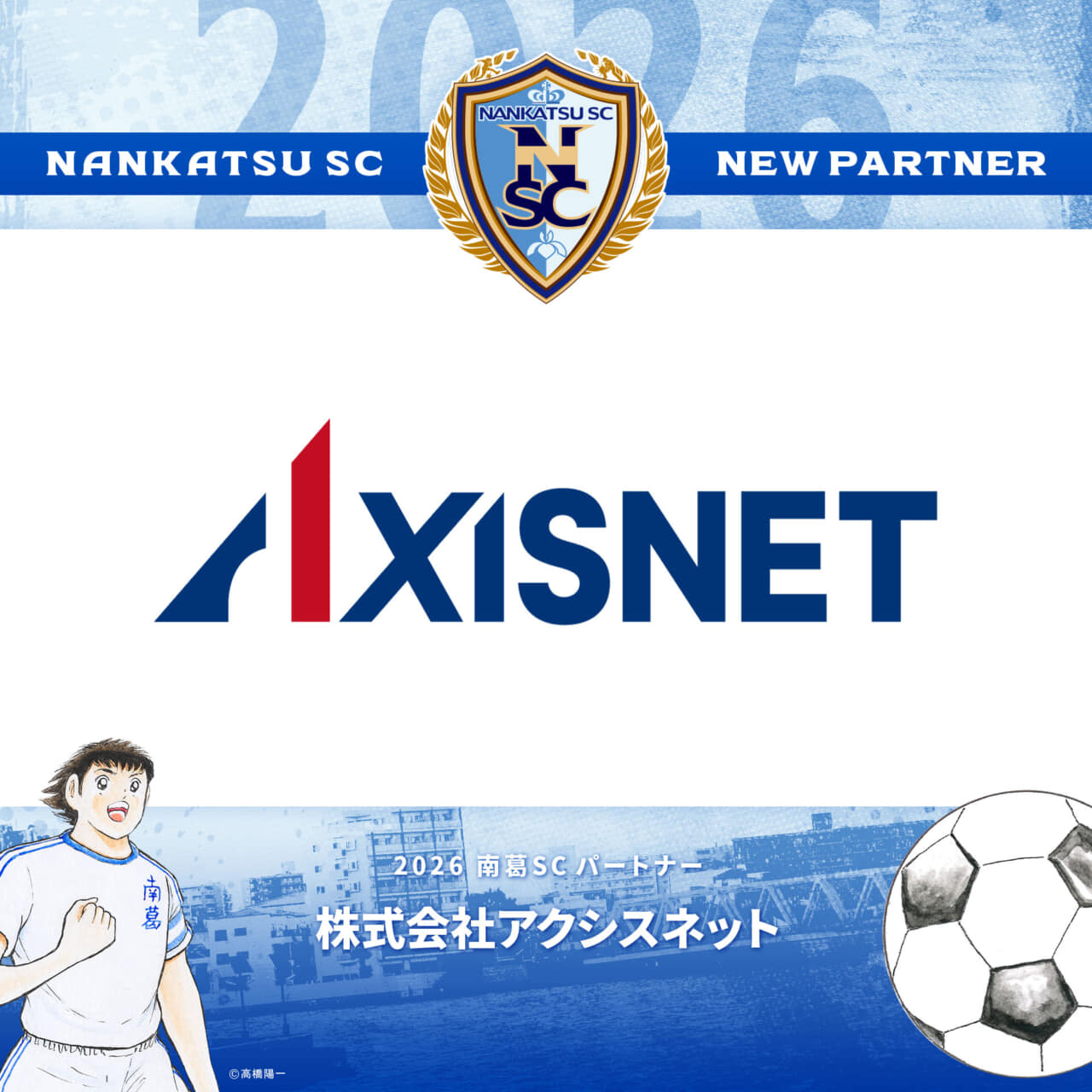 2024シーズンよりパートナーとして、南葛SCをご支援いただいております株式会社アクシスネット様と、2026シーズンのパートナー契約を更新いたしましたのでお知らせします。株式会社アクシスネット様のロゴが、南葛SC WINGS SNSに掲出されます。