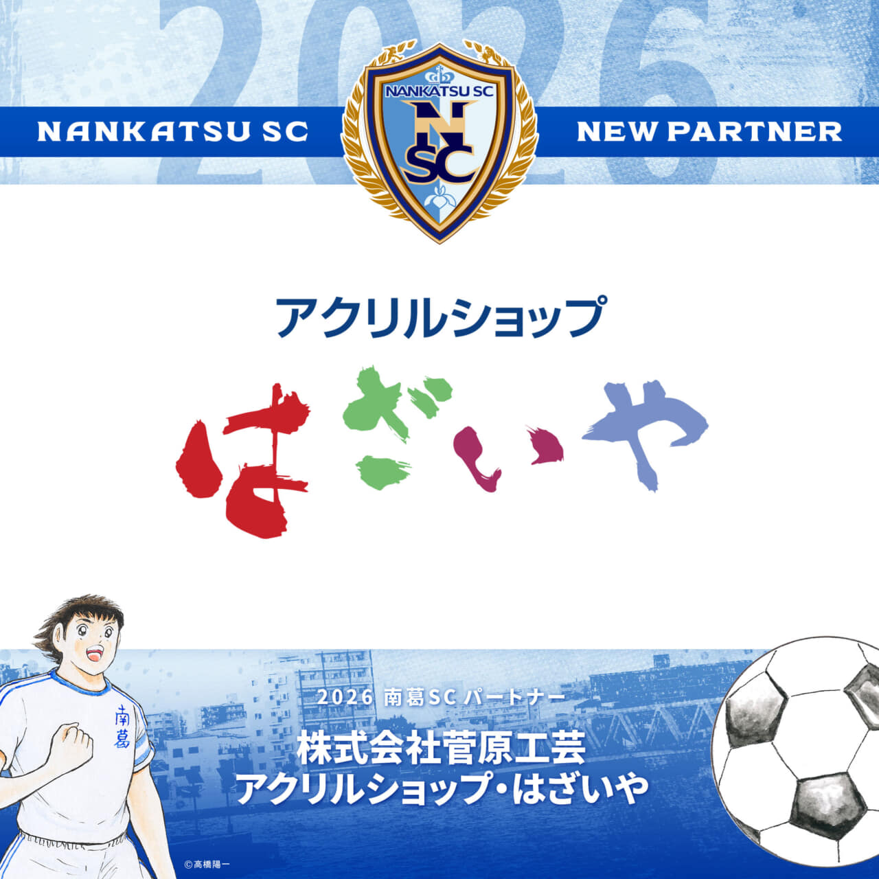 2024シーズンよりパートナーとして、南葛SCをご支援いただいております株式会社菅原工芸様と、2026シーズンのパートナー契約を更新いたしましたのでお知らせします。