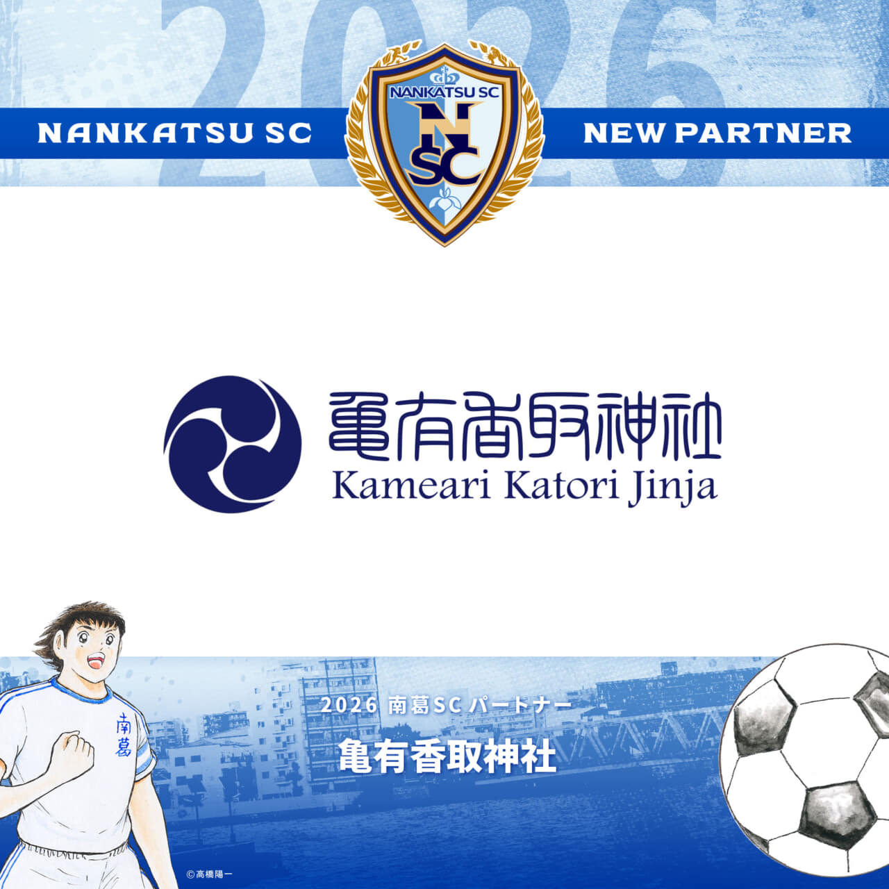 このたび、南葛SCは亀有香取神社様とパートナー契約を締結いたしましたのでお知らせします。