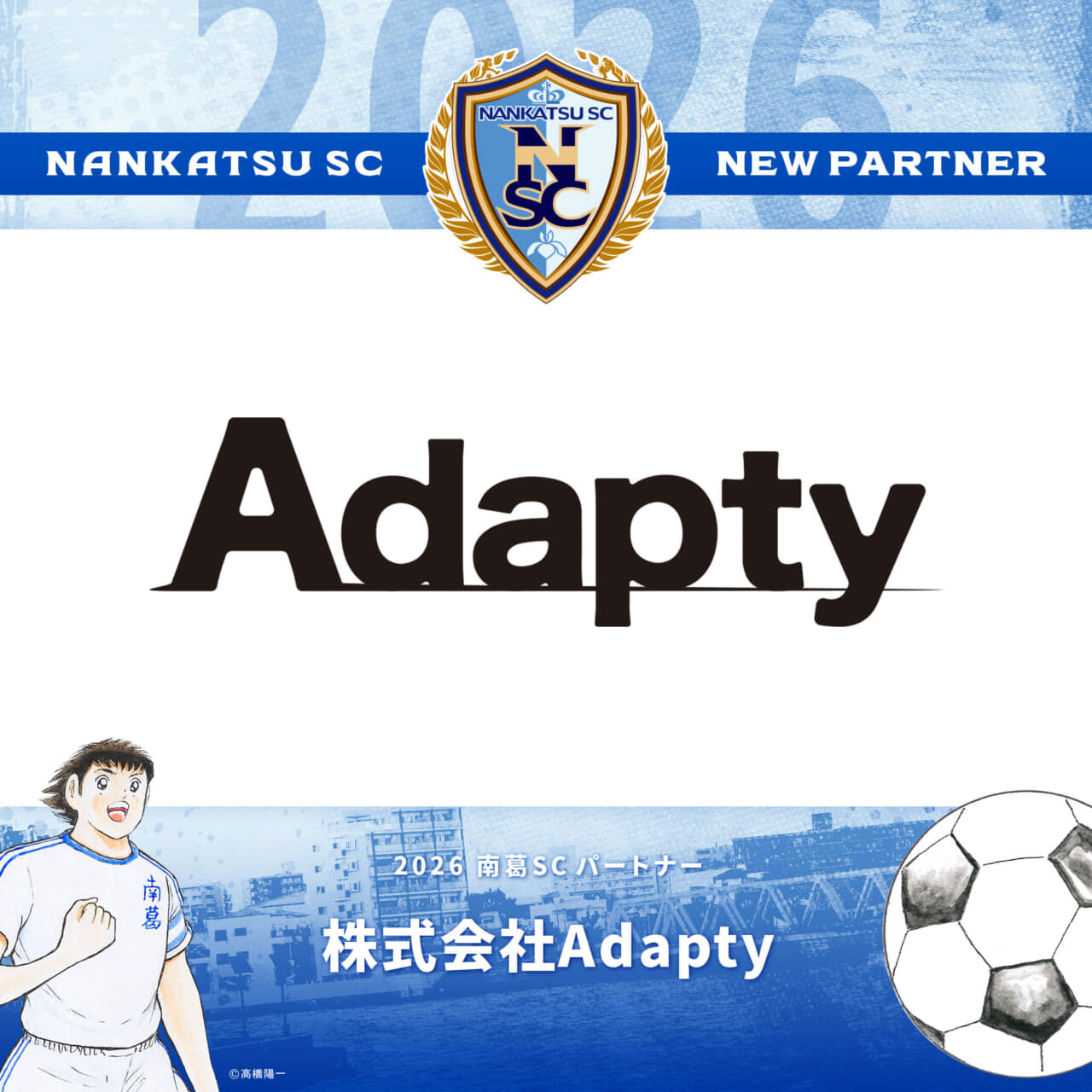 2024シーズンよりパートナーとして、南葛SCをご支援いただいております株式会社Adapty様と、2025シーズンのパートナー契約を更新いたしましたのでお知らせします。株式会社Adapty様のロゴは、南葛SC トップチームの公式ビブスに掲出されます。