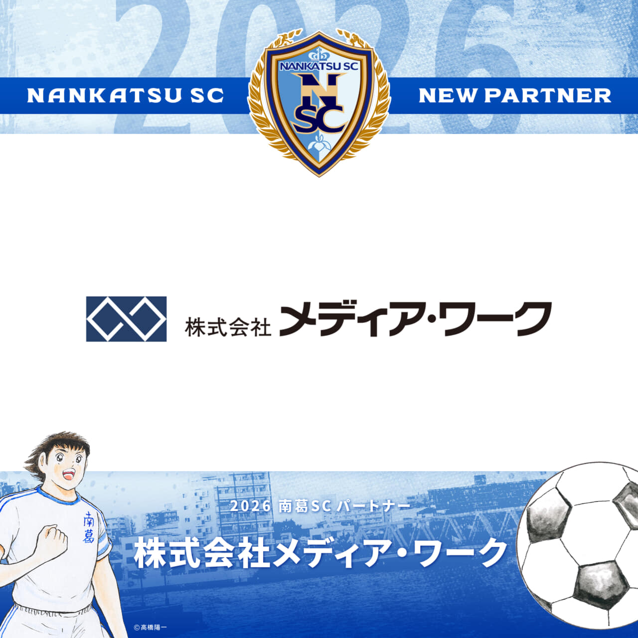 2023シーズンよりパートナーとして、南葛SCをご支援いただいております株式会社メディア・ワーク様と、2026シーズンのパートナー契約を更新いたしましたのでお知らせします。