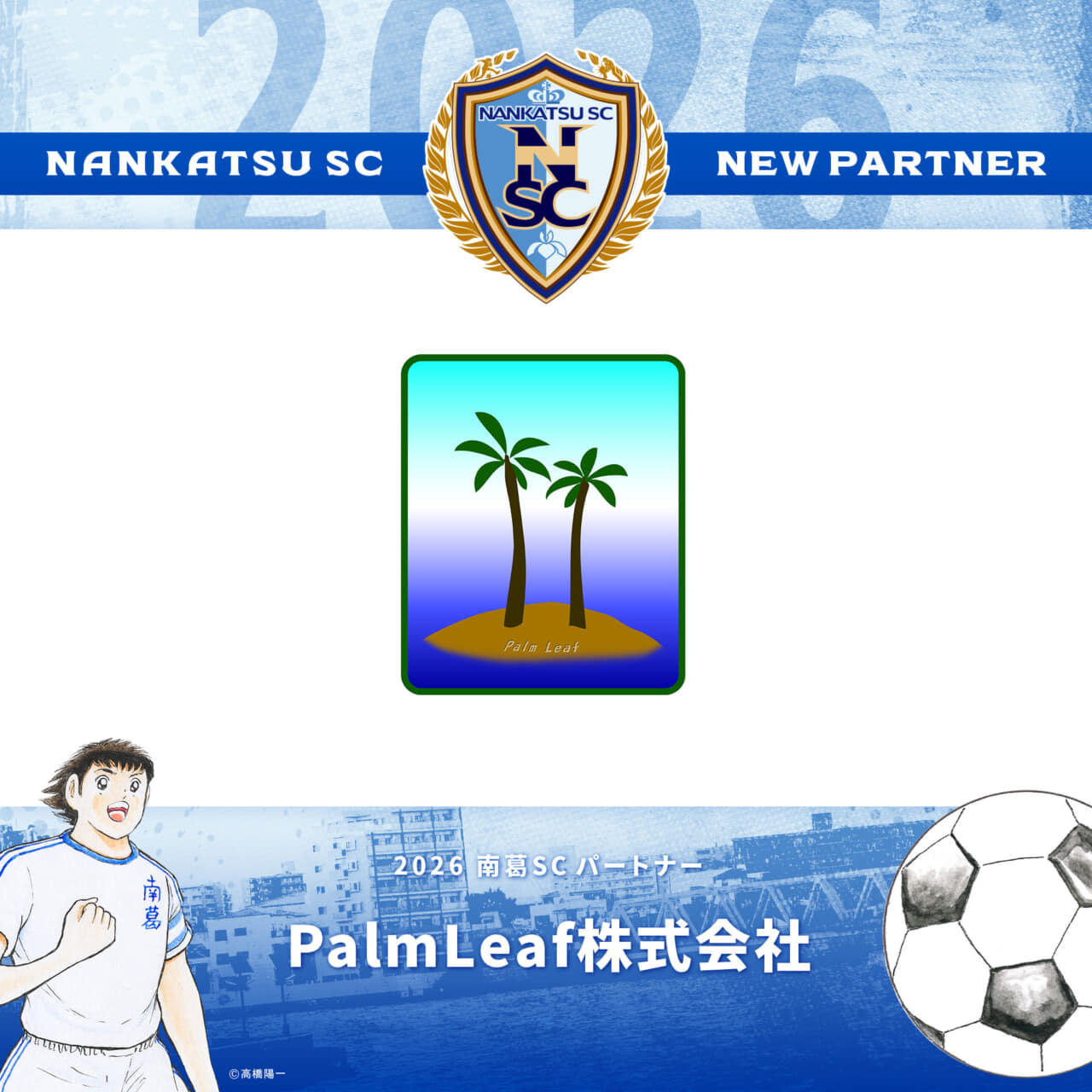 2021シーズンよりパートナーとして、南葛SCをご支援いただいておりますPalmLeaf株式会社様と、2026シーズンのパートナー契約を更新いたしましたのでお知らせします。
