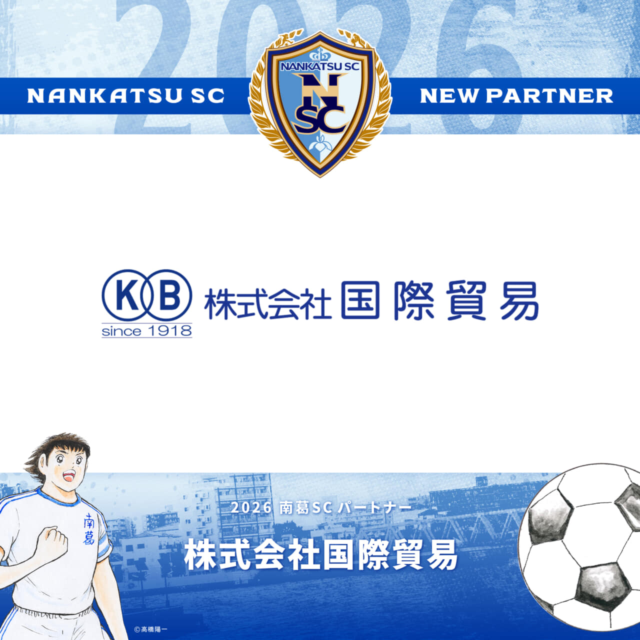 2023シーズンよりパートナーとして、南葛SC、南葛SC WINGSをご支援いただいております株式会社国際貿易様と、2026シーズンのパートナー契約を更新いたしましたのでお知らせします。株式会社国際貿易様のロゴがトップチームの公式戦練習着ならびに、南葛SC WINGSの公式戦練習着の前面に掲出されます。
