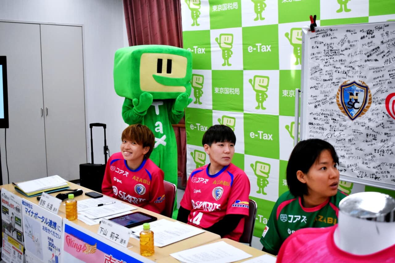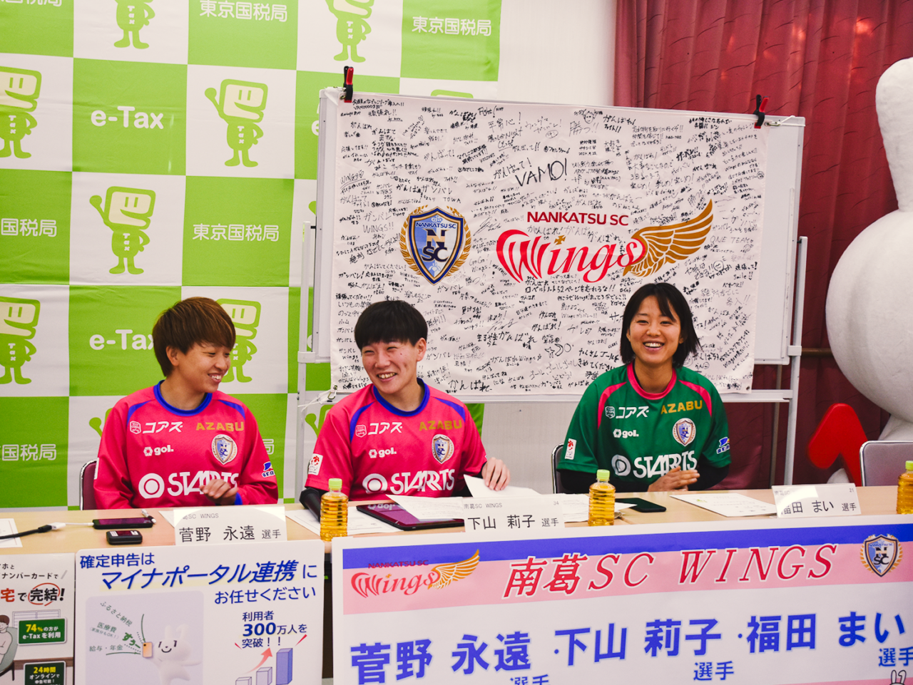 2月5日(木)、南葛SC WINGSの菅野永遠、下山莉子、福田まいの3選手が、葛飾税務署「1日広報大使」に就任しました。