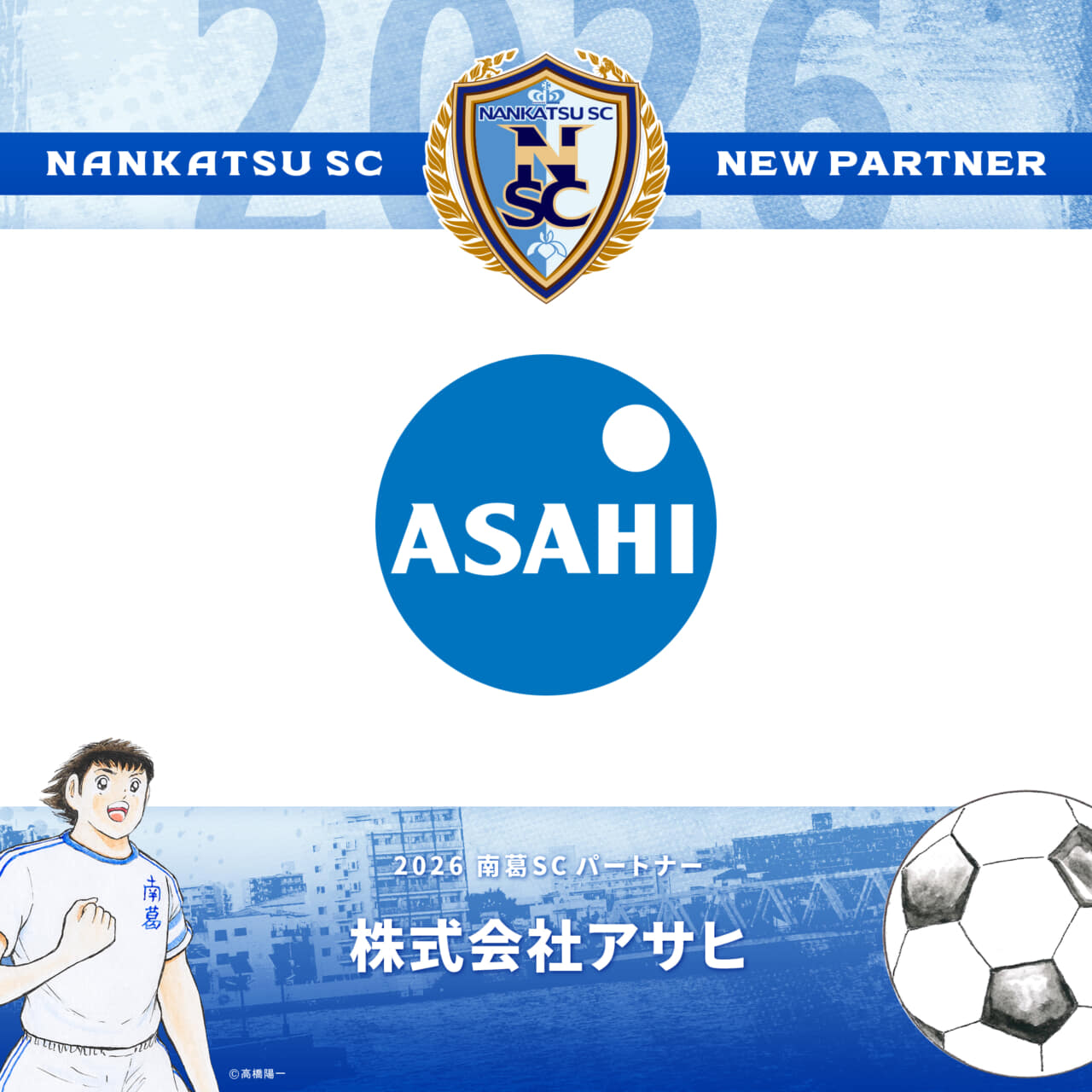 2024シーズンよりパートナーとして、南葛SCをご支援いただいております株式会社アサヒ様と、2026シーズンのパートナー契約を更新いたしましたのでお知らせします。