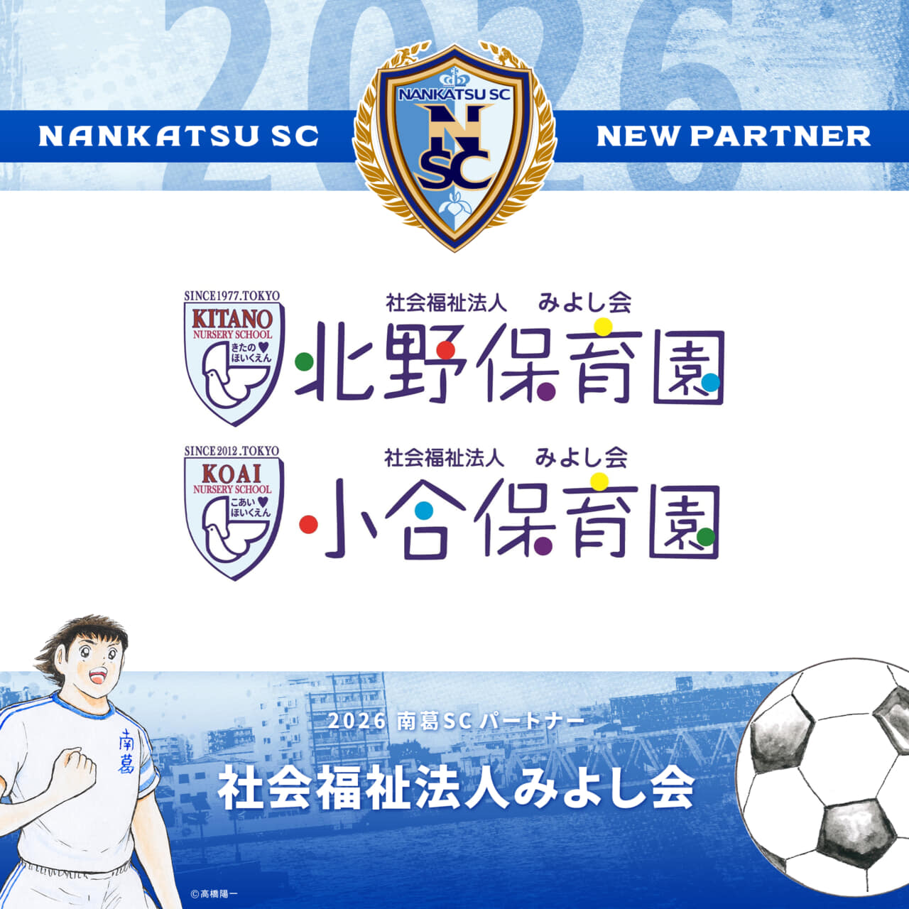 2022シーズンよりパートナーとして、南葛SCをご支援いただいております社会福祉法人みよし会様と、2026シーズンのパートナー契約を更新いたしましたのでお知らせします。