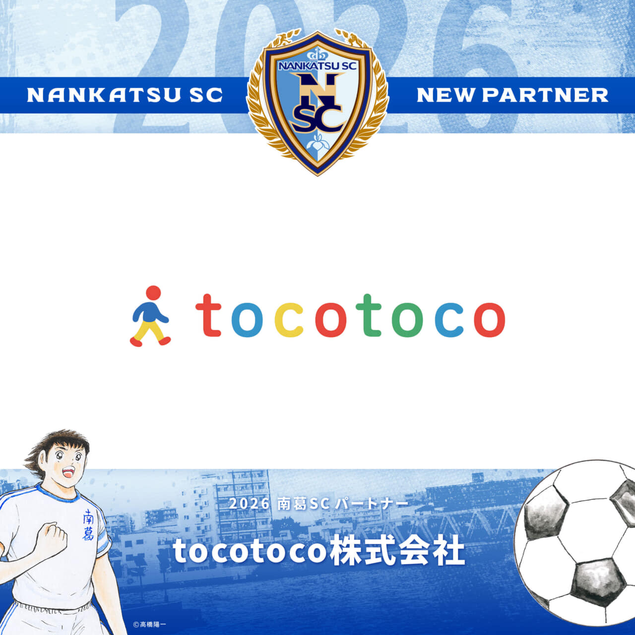 南葛SC WINGSをご支援いただいておりますtocotoco株式会社様と、2026シーズンのパートナー契約を更新いたしましたのでお知らせします。tocotoco株式会社様のロゴは、南葛SC WINGSの公式練習着の肩部分に掲出されます。