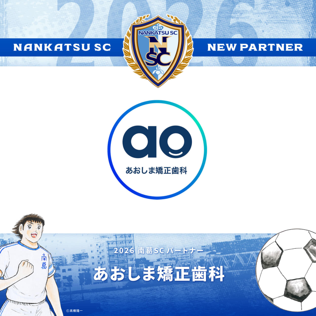 2025シーズンよりパートナーとして、南葛SCをご支援いただいておりますあおしま矯正歯科様と、2026シーズンのパートナー契約を更新いたしましたのでお知らせします。あおしま矯正歯科様のロゴは、南葛SC WINGSのSNS誕生日投稿に掲示されます。