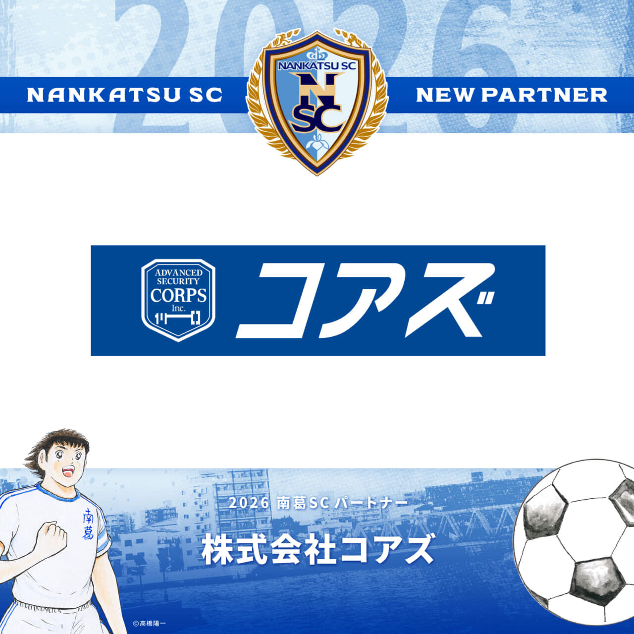 2023シーズンよりパートナーとして、南葛SC、南葛SC WINGSをご支援いただいております株式会社コアズ様と、2026シーズンのパートナー契約を更新いたしましたのでお知らせします。株式会社コアズ様のロゴは、トップチームのオフィシャル練習着、南葛SC WINGSのユニフォーム鎖骨部分、公式練習着の背中に掲出されます。