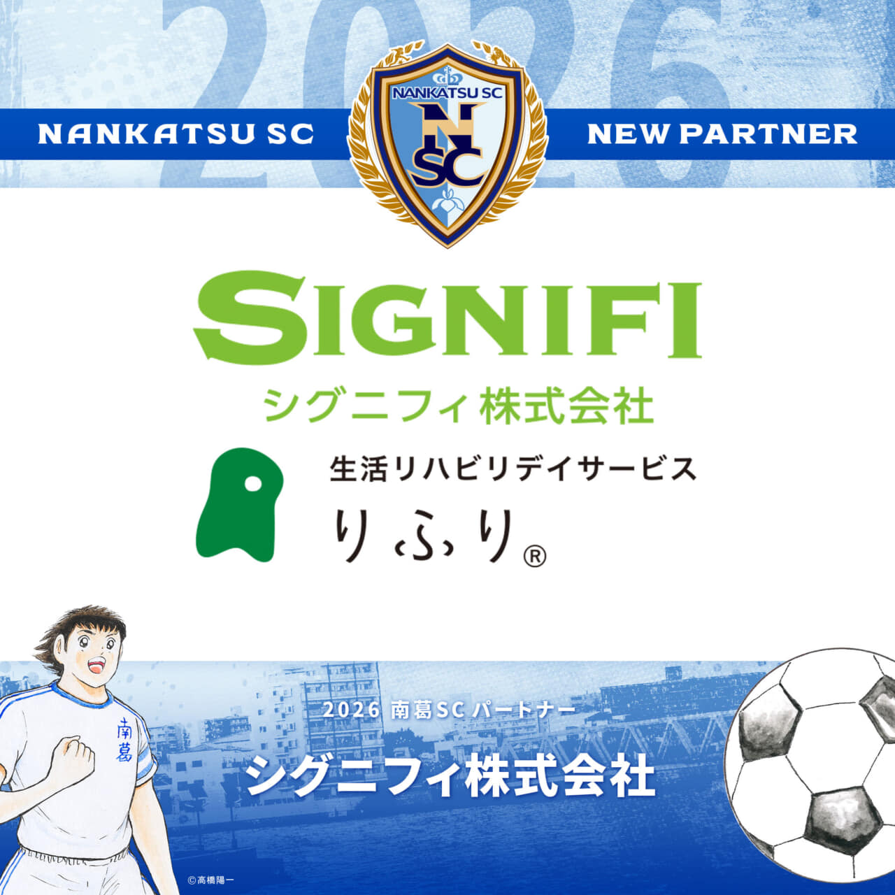 2022シーズンよりパートナーとして、南葛SCをご支援いただいておりますシグニフィ株式会社様と、2026シーズンのパートナー契約を更新いたしましたのでお知らせします。南葛SC WINGSのビブスにりふりのロゴが掲出されてます。