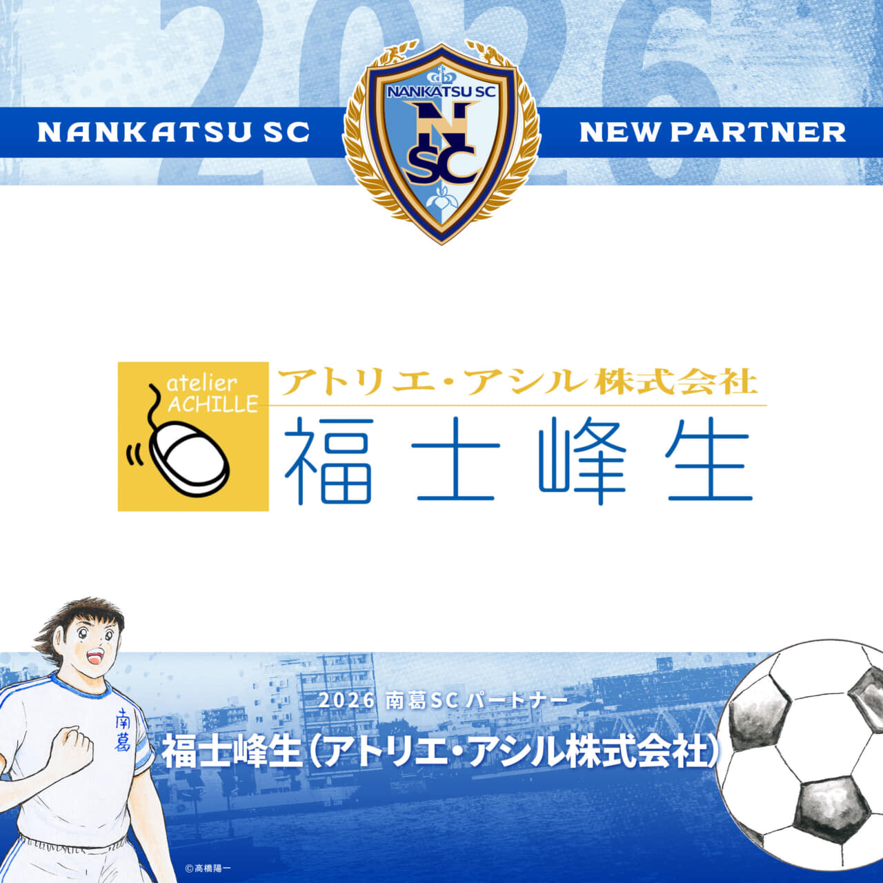 2025シーズンよりパートナーとして、南葛SCをご支援いただいております福士峰生(アトリエ・アシル株式会社)様と、2026シーズンのパートナー契約を更新いたしましたのでお知らせします。