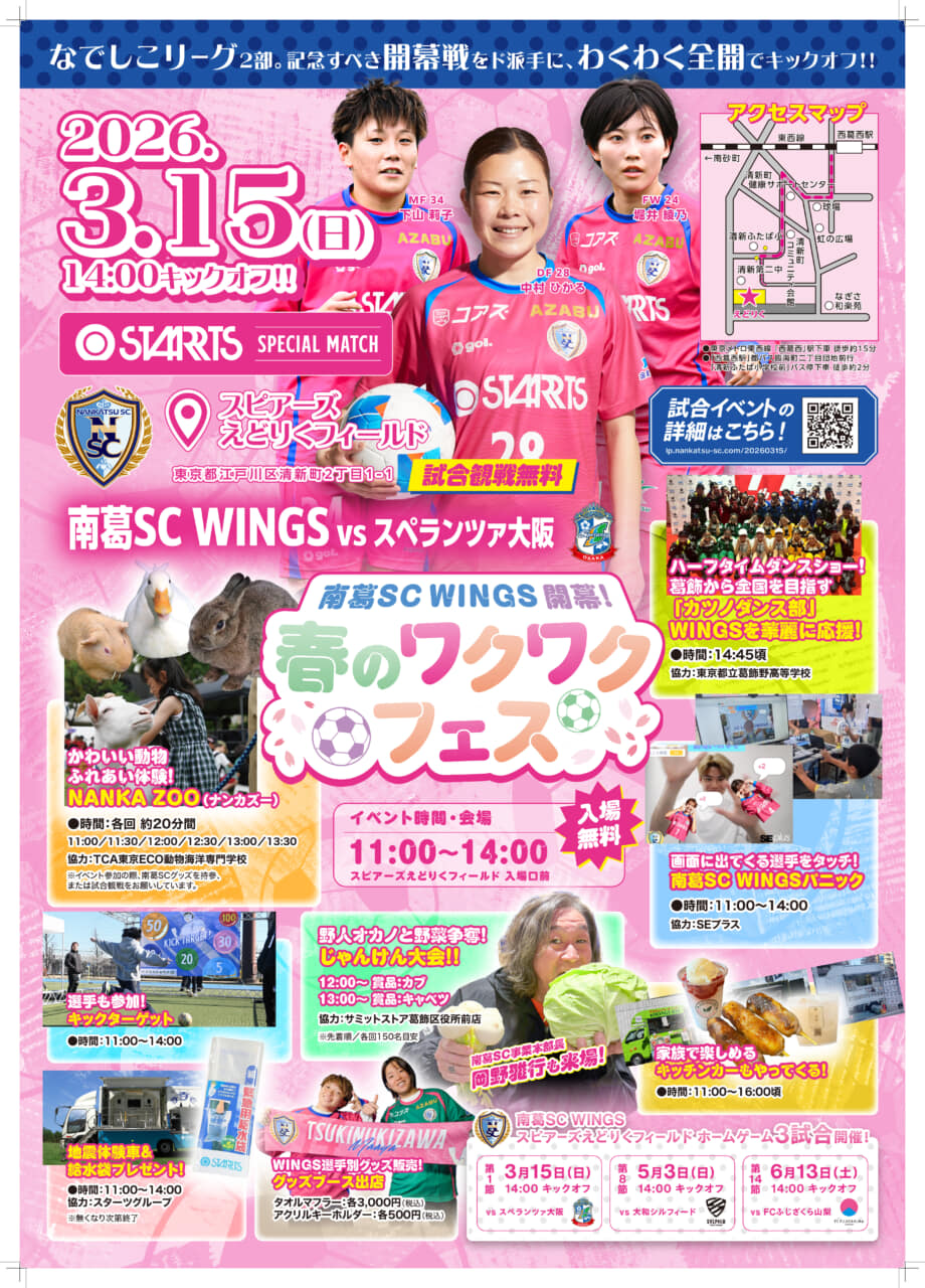 スペランツァ大阪戦イベント情報|2026プレナスなでしこリーグ2部|南葛SC WINGSオフィシャルサイト