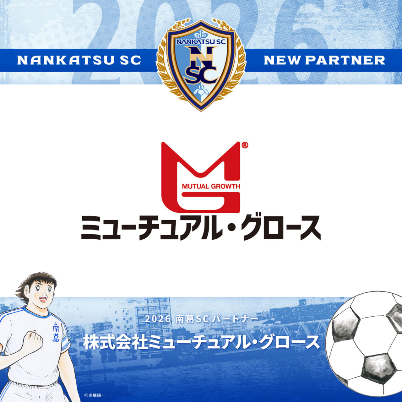 2018シーズンよりパートナーとして、南葛SCをご支援いただいております株式会社ミューチュアル・グロース様と、2026シーズンのパートナー契約を更新いたしましたのでお知らせします。トップチーム公式ビブスの背中に株式会社ミューチュアル・グロース様のロゴが掲出されます。