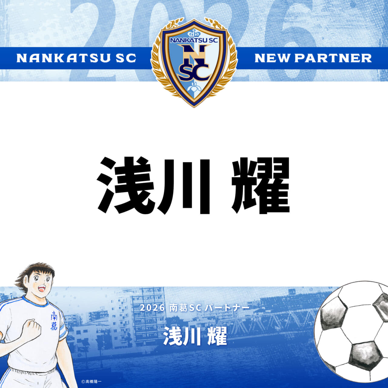 このたび南葛SCは浅川耀様と、2026シーズンのパートナー契約を締結いたしましたのでお知らせします。