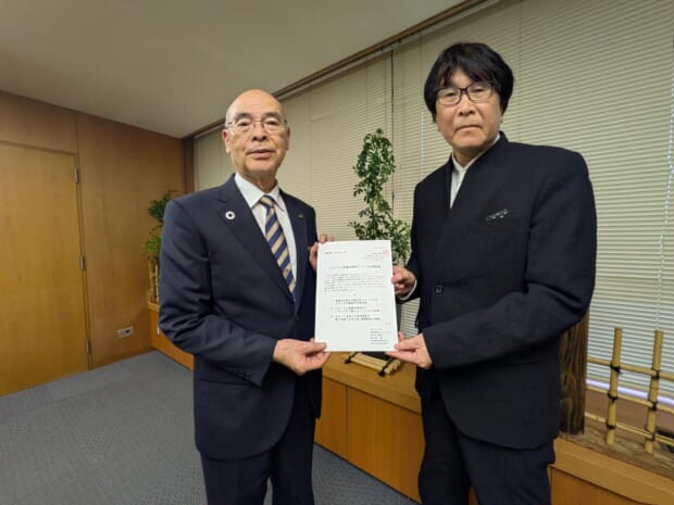 株式会社南葛SCは、2026年3月31日、葛飾区の青木克德区長を訪問し、スタジアム整備計画等に関する要望書を提出いたしました。当日は、南葛SC代表取締役社長 高橋陽一、代表取締役専務 岩本義弘が出席いたしました。